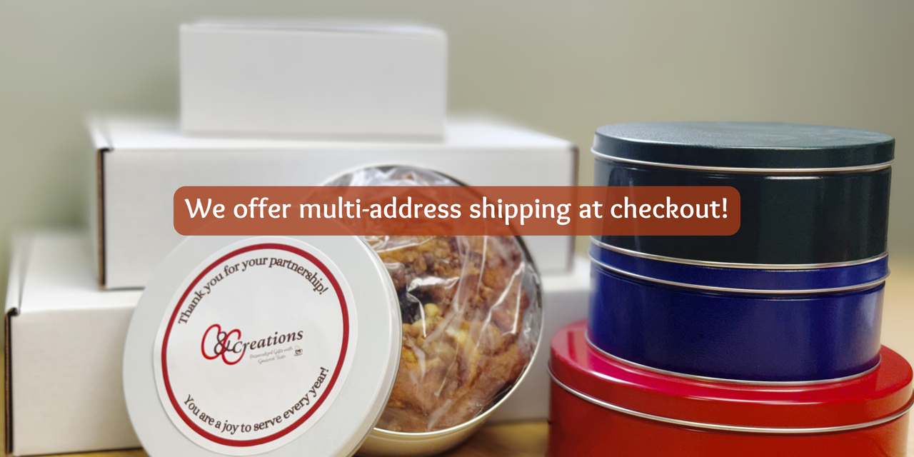 In order to allow our two little C's room to move around the house, we relocated to a warehouse and continued to expand the business. We added a decadent signature line of coffee cakes and soon were receiving requests for even more options, so we designed our popular coffee cake stacks and gift baskets.